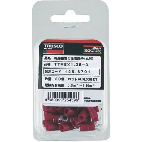 • 【CAINZ-DASH】トラスコ中山 環境配慮型絶縁被覆付圧着端子丸形φ4.3長さ26.0 (15個入) T-TMEX3.5-4【別送品】