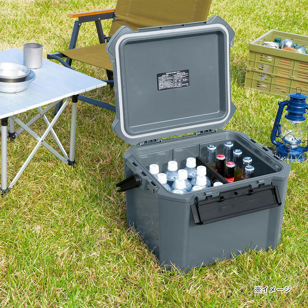 ・断熱材厚み約2倍(当社従来品比較)で保冷力UP ・フラットなフタ形状でサイドテーブルとしても使用可能 ・積み重ね可能(#34とも積み重ね可能)・持ち運びしやすいロングハンドル仕様 ・しっかり留まる前面幅広1バックル仕様 ・イスとしても使用可能な強度