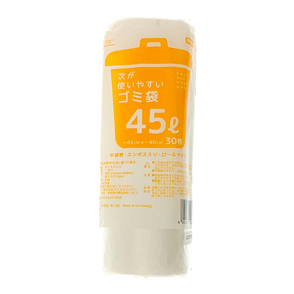 ●次の袋がゴミ箱の中でスタンバイ!●だから取り替え作業がラクラク!●45L●30枚●半透明・エンボス入り・ロールタイプ