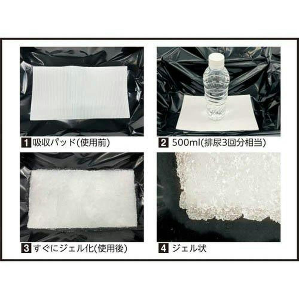材質:袋・ひも:ポリエチレン/吸水パッド:吸水性ポリマー、セルロース パット吸水量:約500ml(目安:排尿2〜3回分)