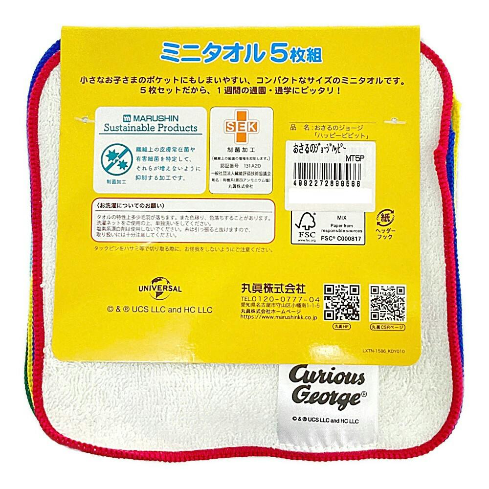 ミニタオル ジョージ ハッピー 5枚組