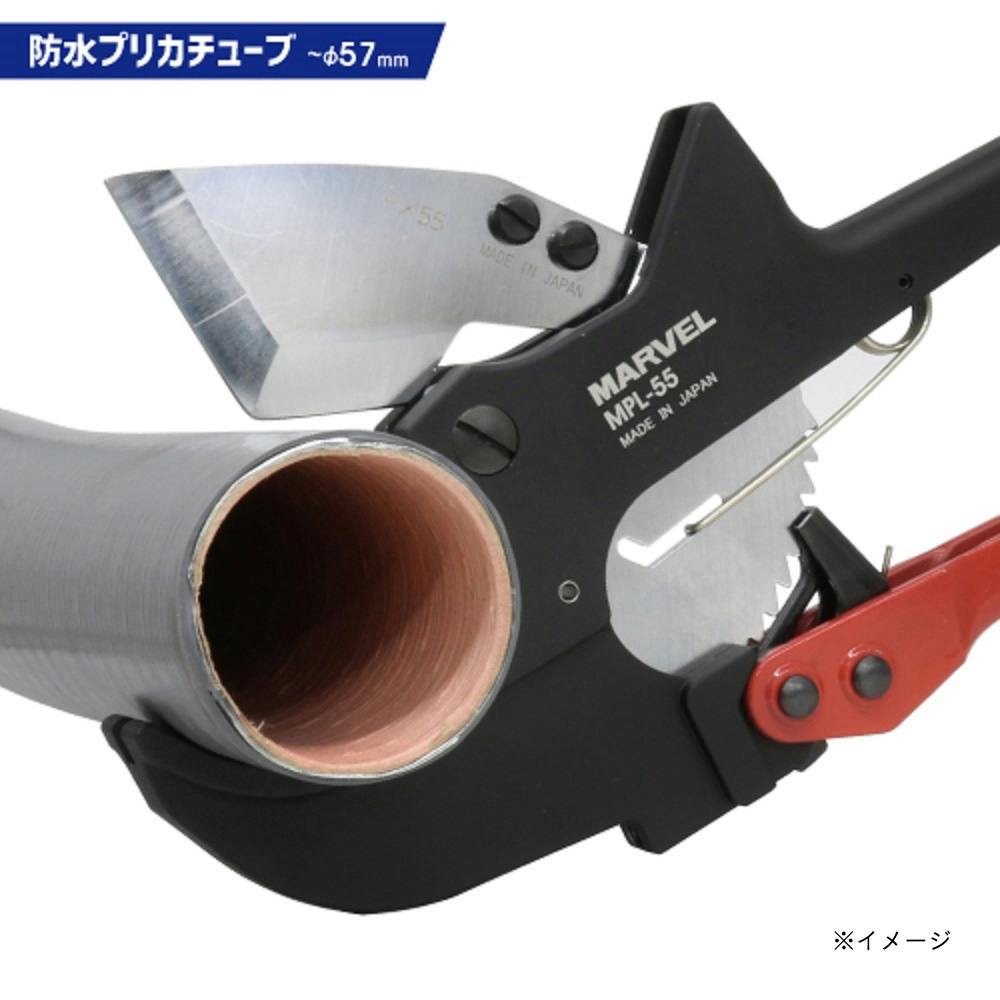 プリカチューブ(金属製可とう電線管)は呼び径50(外径55mm)まで切断可能、防水プリカチューブは呼び径50(外径57mm)まで切断可能
