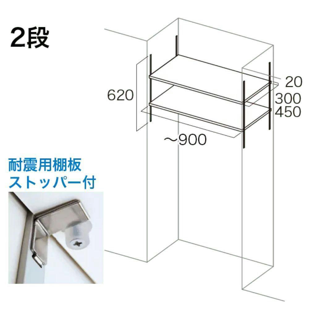 可動棚板:20×450×900mm×2枚/棚柱×4本/棚受×8個(棚2枚分)/ビスL=40×24本/ビスL=16×24本/耐震用棚板ストッパー×4個/ストッパー用ビスL=20×4本