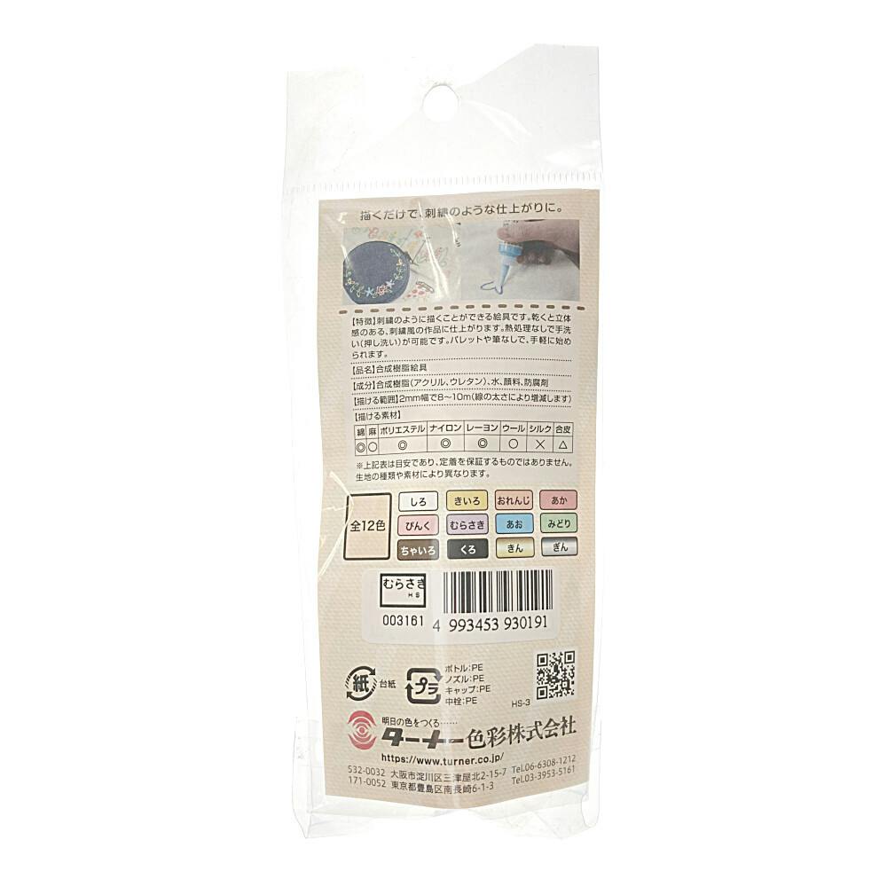 1.刺繍のように描くことができる絵具です。乾くと立体感のある、刺繍風の作品に仕上がります。2.熱処理なしで手洗い(押し洗い)が可能です。3.パレットや筆なしで、手軽に始められます。