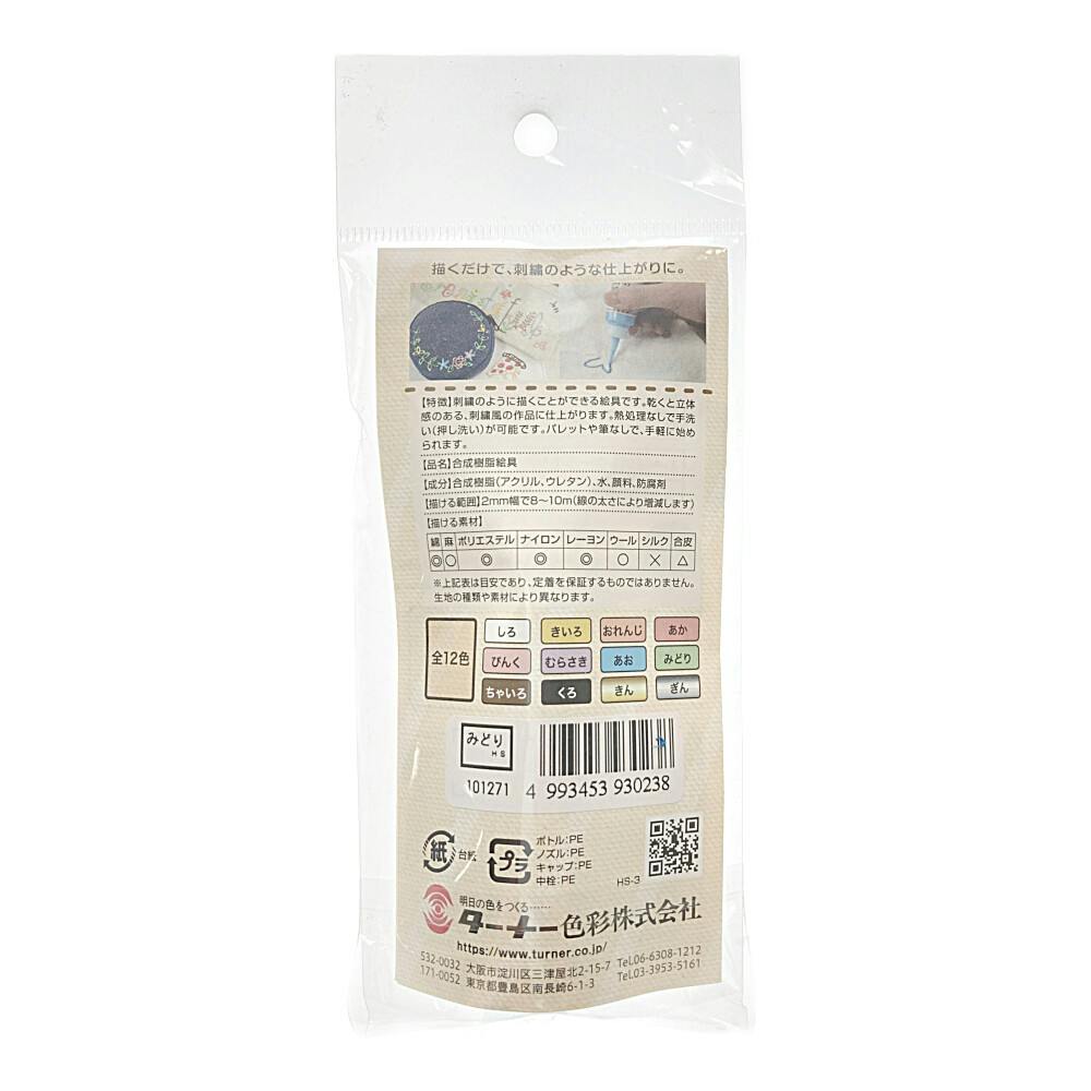 1.刺繍のように描くことができる絵具です。乾くと立体感のある、刺繍風の作品に仕上がります。2.熱処理なしで手洗い(押し洗い)が可能です。3.パレットや筆なしで、手軽に始められます。