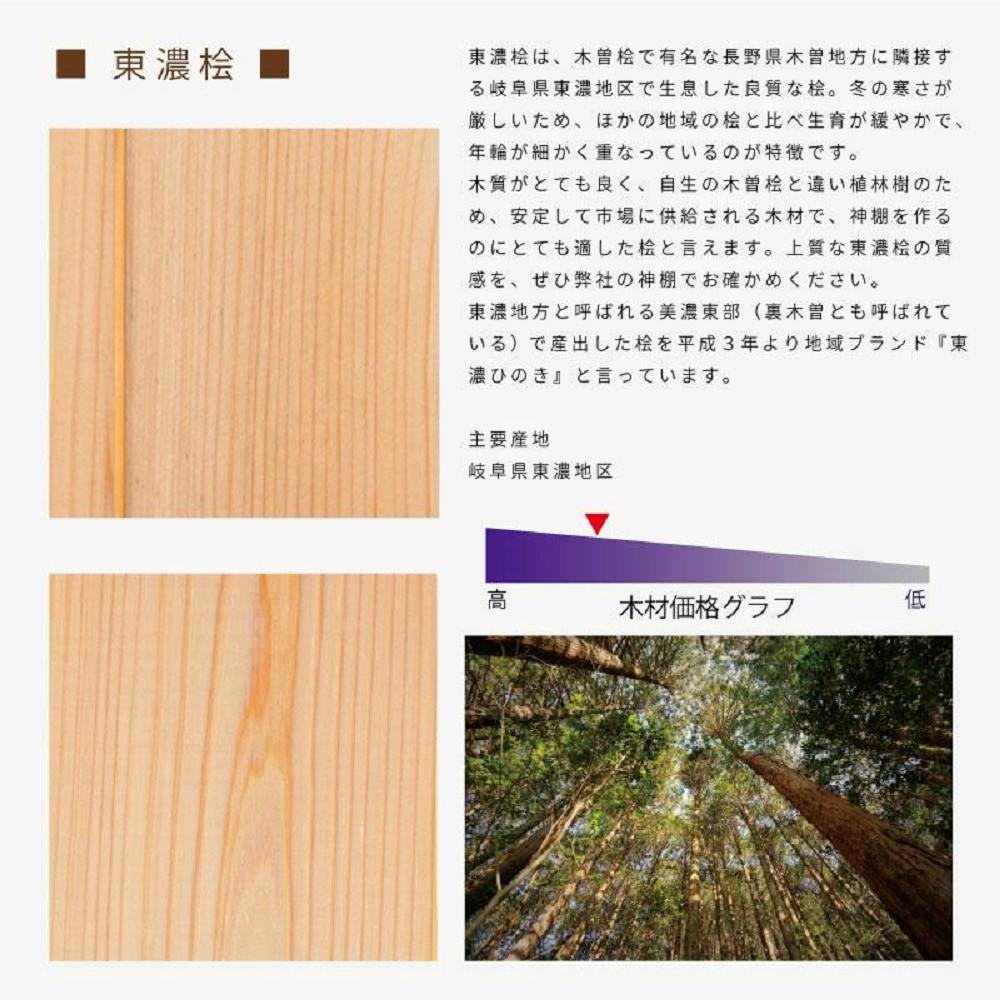 一般的な屋根違い型ではなく、3枚の屋根が全て反り屋根となっている特別な神棚です。●扉の金具には真鍮製の金具を使用しており自然な輝きを放ちます。●正面階段上に特別な装飾を施して高級感ある重厚な造りとしました。