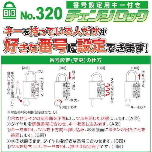• 【CAINZ-DASH】清水 ダイヤルキー BIG NO.320 番号設定キー付チェンジロック 40mm 320-40【別送品】