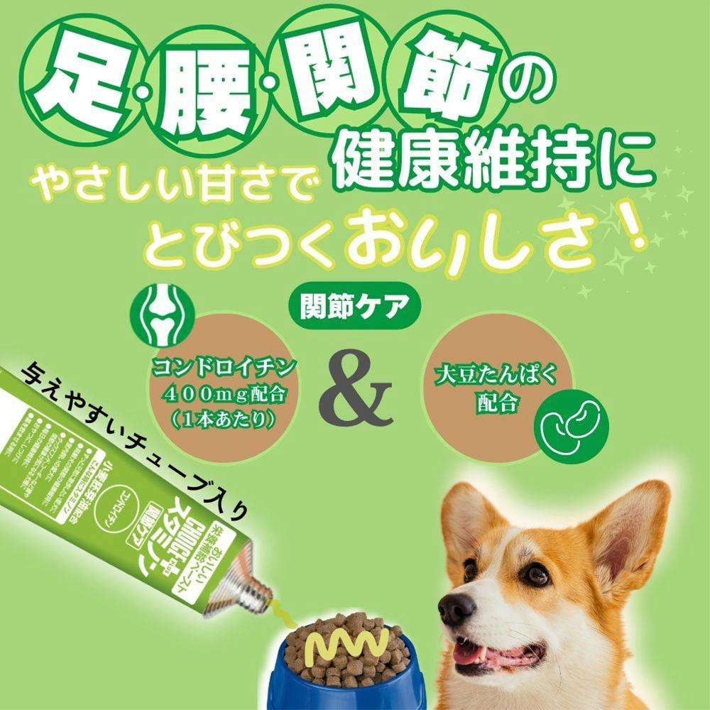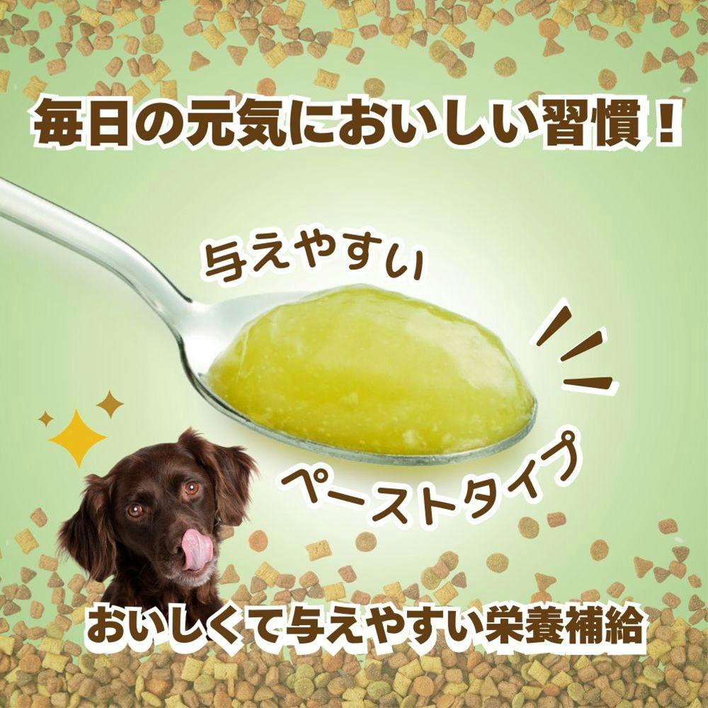 ●コンドロイチン配合で、足・腰・関節の健康を維持●与えやすいペーストタイプ●オクタコサノール、必須脂肪酸、ビタミンEなどの天然ビタミンを豊富に含む小麦胚芽油を配合●良質のたん白質である大豆たん白を配合●やさしい甘さでとびつくおいしさ