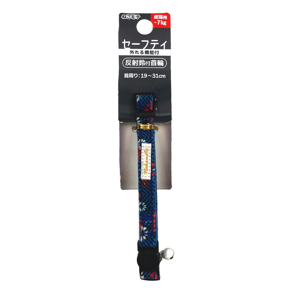 ねこモテ猫首輪 和ヘリンボン S 紺