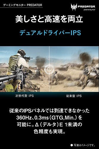 超高速の描画スピード、リフレッシュレート360Hzを実現。連続射撃や場面転換などの高速コマンドにおいて、遅延とは無縁の圧倒的なスピードを発揮します