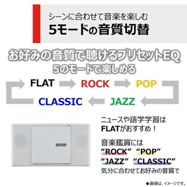 ・サイズ(約):幅272×高さ146×奥行62mm(突起含まず)、幅272×高さ148×奥行65mm(突起含む) ・質量(約):1.3kg(乾電池含む) ・電源:AC 100V、50/60Hz DC 9V、単3形乾電池×6本(別売) ・電池持続時間(東芝アルカリ乾電池 単3×6本使用時):ラジオ受信時約14時間、CD再生時約3時間