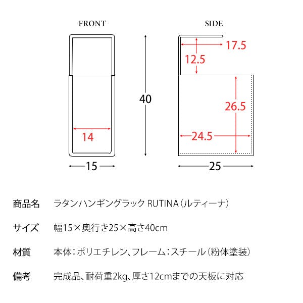 完成品、耐荷重2kg、厚さ12cmまでの天板に対応