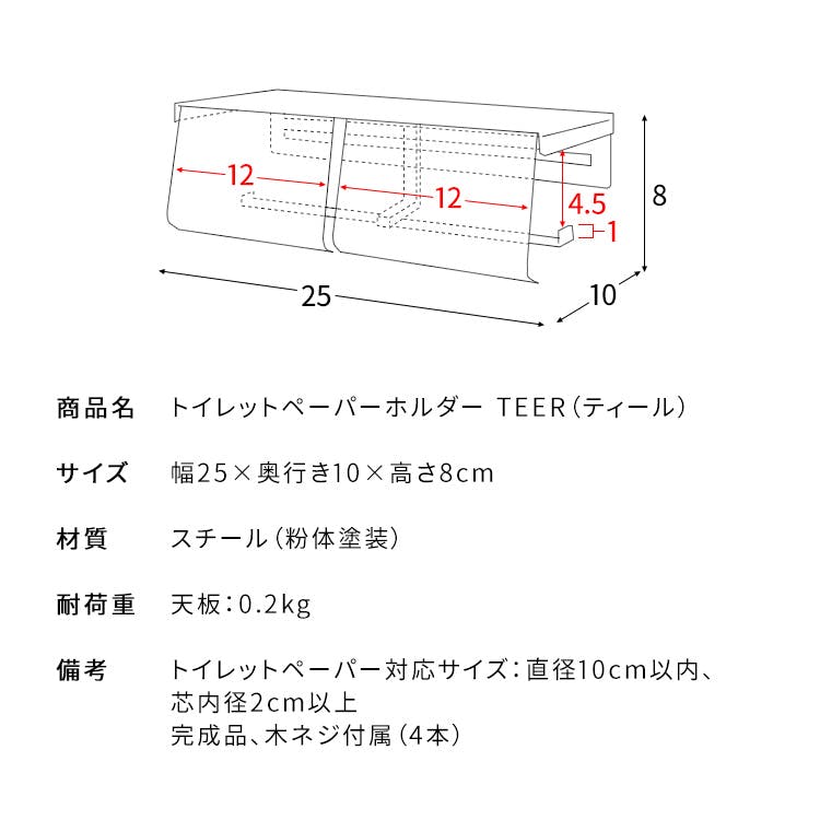 トイレットペーパー対応サイズ:直径10cm以内、芯内径2cm以上、完成品、木ネジ付属(4本)