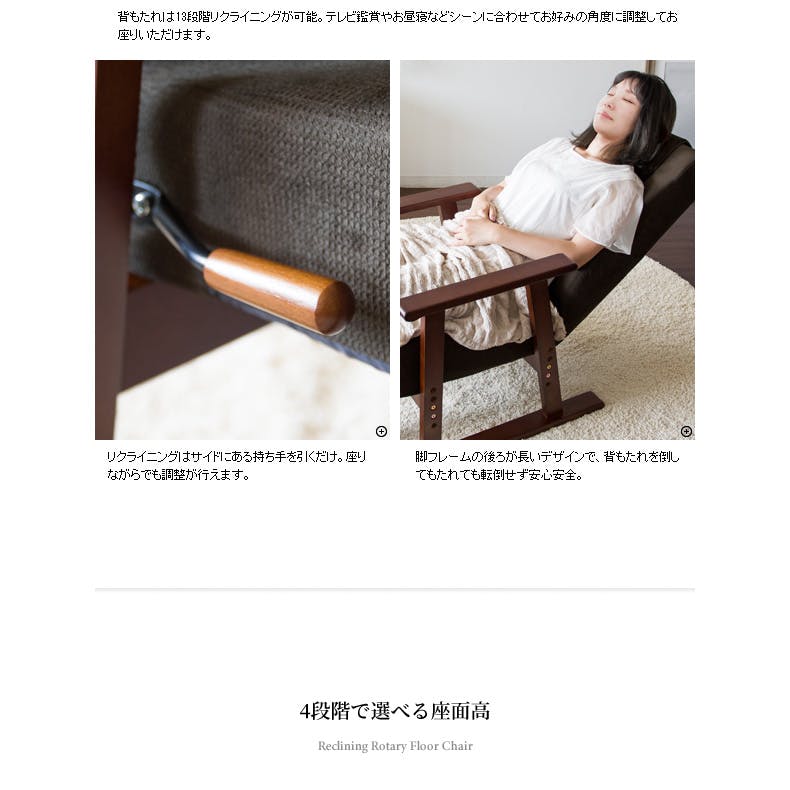 組立式(約10分)、日本製、レバー式13段リクライニング、座面高さ調整4段階