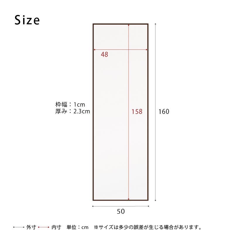 【日本製】【細枠ウォールミラー(幅50×高さ160cm)(ブラウン/茶)】 天然木 姿見 鏡 ワイド 高級感 木製 飛散防止加工 壁掛け 国産 完成品