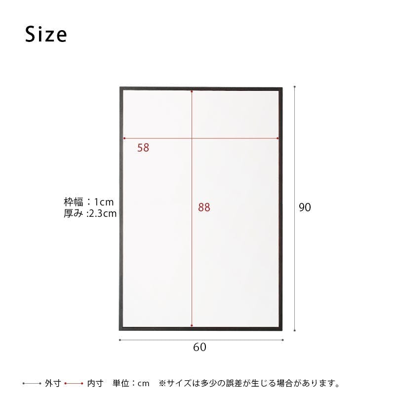 【日本製】【細枠ウォールミラー(幅60×高さ90cm)(ブラウン/茶)】 天然木 姿見 鏡 ワイド ドレッサー 高級感 木製 飛散防止加工 壁掛け 国産 完成品