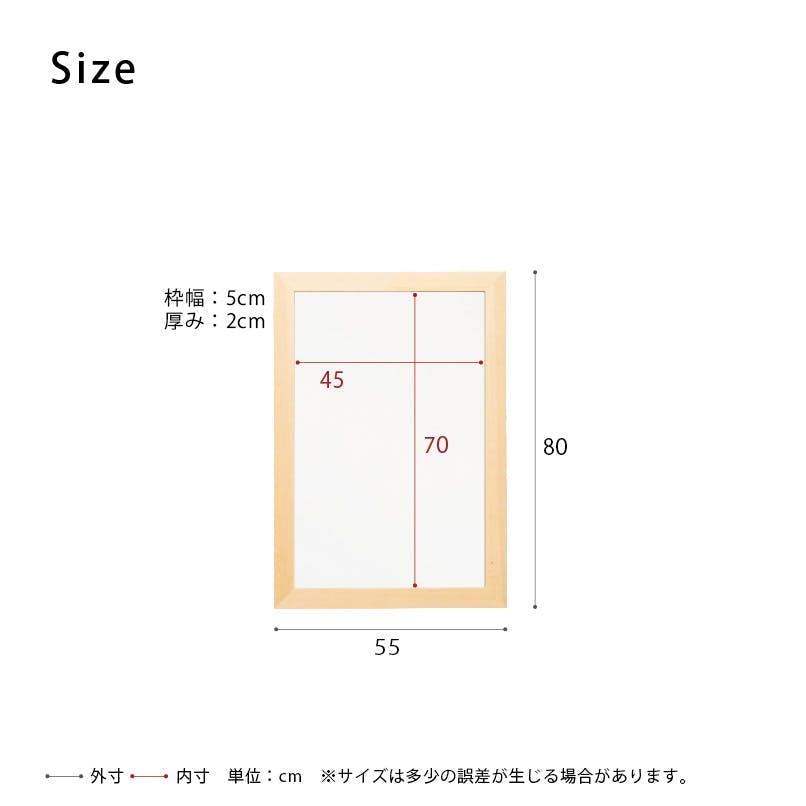 【日本製】【幅広枠ウォールミラー(幅55×高さ80cm)(ナチュラル)】 天然木 姿見 鏡 ワイド ドレッサー 高級感 木製 飛散防止加工 壁掛け 北欧風 ヴィンテージ 国産 完成品