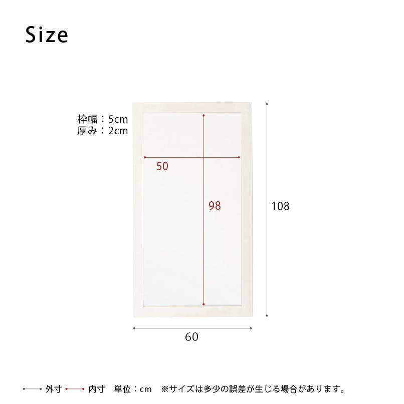 【日本製】【幅広枠ウォールミラー(幅60×高さ108cm)(ホワイト/白) 】天然木 姿見 鏡 ワイド 高級感 木製 飛散防止加工 壁掛け 北欧風 ヴィンテージ 国産 完成品