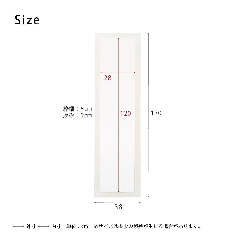 【日本製】【幅広枠ウォールミラー(幅38×高さ130cm)(ホワイト/白)】 天然木 姿見 鏡 高級感 木製 飛散防止加工 壁掛け 北欧風 ヴィンテージ 国産 完成品