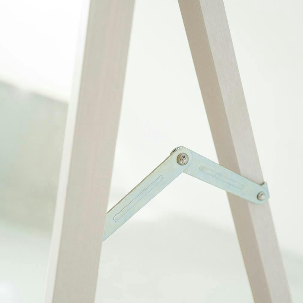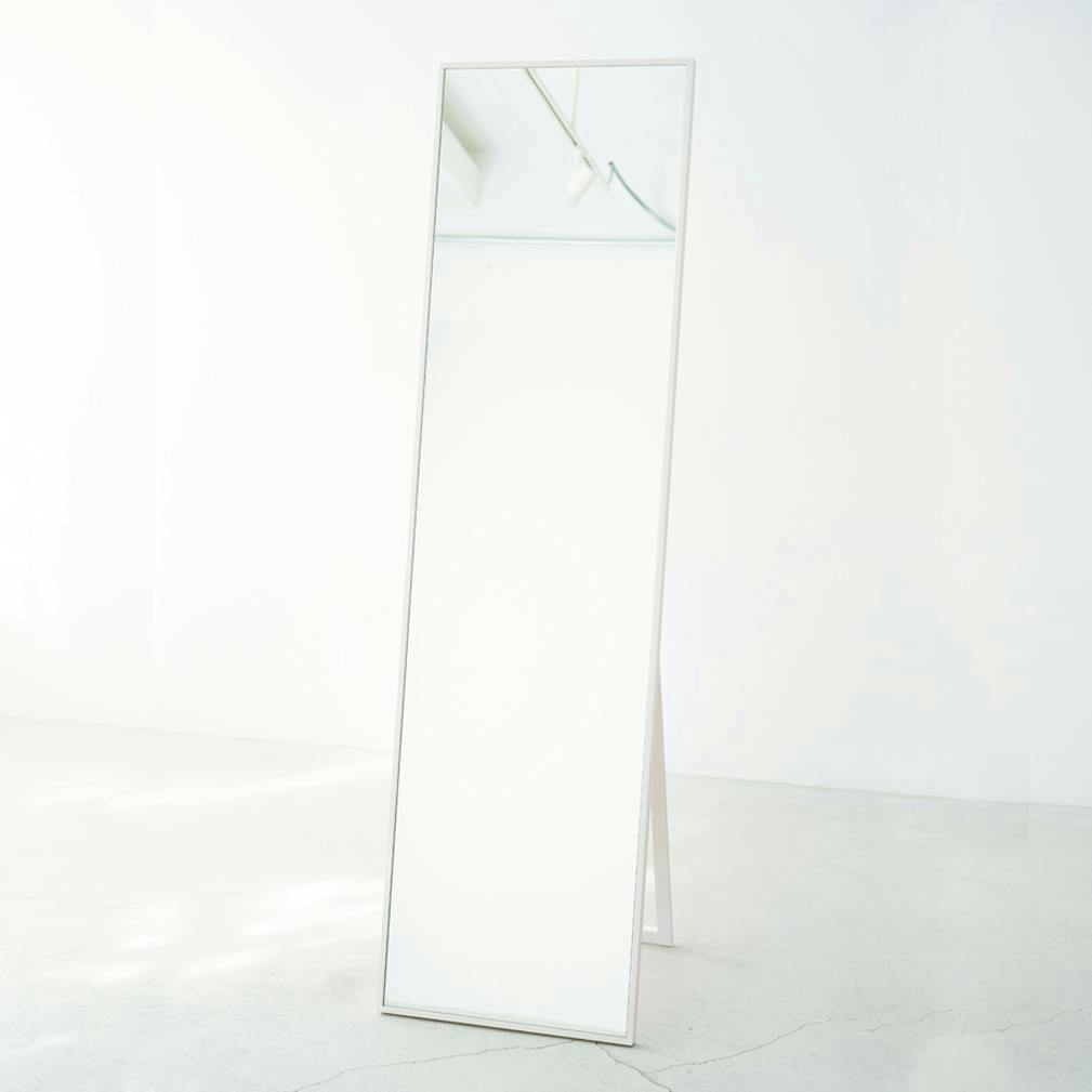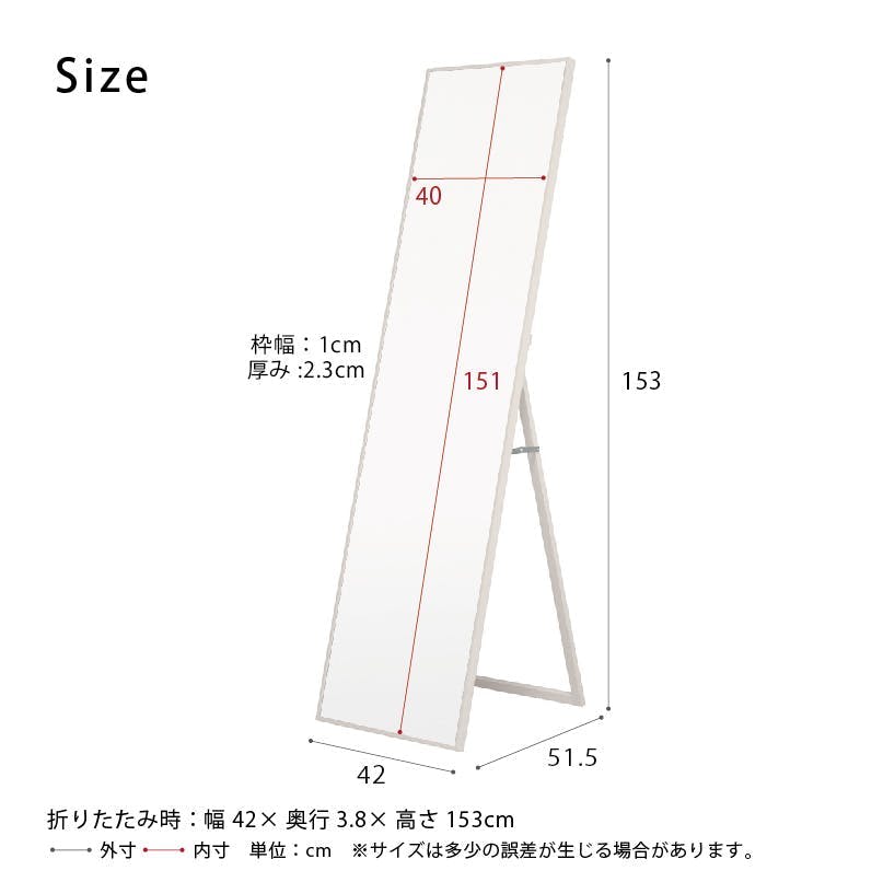 【日本製】【細枠スタンドミラー 幅42cm(ホワイト/白)】 天然木 姿見 鏡 ワイド 高級感 木製 飛散防止加工 折りたたみ 国産 完成品