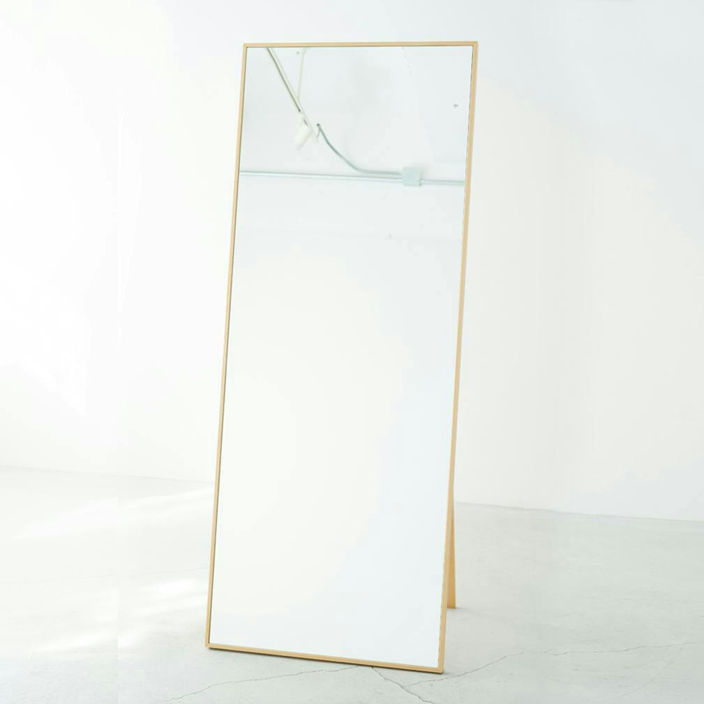 【日本製】【細枠スタンドミラー 幅60cm(ナチュラル)】 天然木 姿見 鏡 ワイド 高級感 木製 飛散防止加工 折りたたみ 国産 完成品