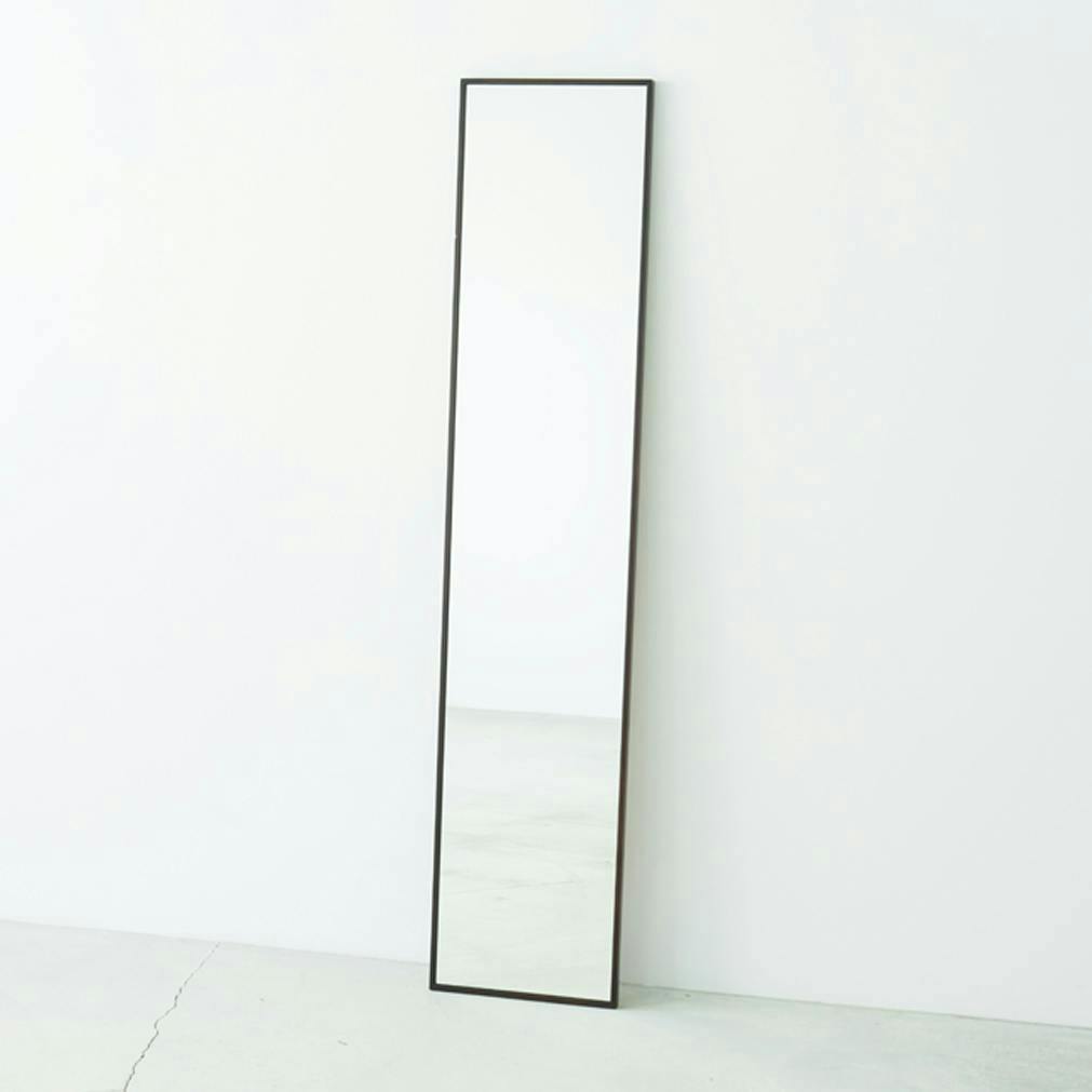 【日本製】【細枠ウォールミラー 幅32cm(ブラウン/茶)】 天然木 姿見 鏡 高級感 木製 飛散防止加工 壁掛け 国産 完成品