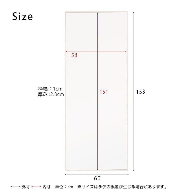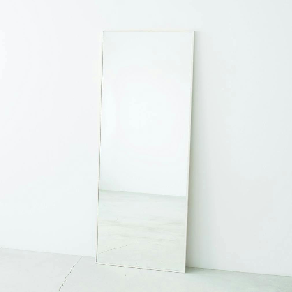 【日本製】【細枠ウォールミラー 幅60cm(ホワイト/白) 】天然木 姿見 鏡 ワイド 高級感 木製 飛散防止加工 壁掛け 国産 完成品