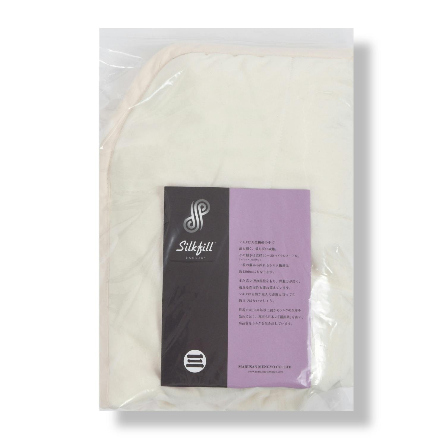 ●中わたにはふわふわの絹わた「シルクフィル」が使用され、極上の使い心地となっております。●シルクフィルは長繊維状のためドレープ性に大変優れ、しなやかな使い心地です。極細繊維が細かく重なり合うことで、薄くて軽いのにも関わらず非常に暖かです。また静電気を起こしにくく、ほこりやチリ、菌などを寄せ付けないため敏感肌の方にもピッタリのやさしい素材です。●側生地は綿100%なので、中わたのシルクの吸放湿性を損なうことはありません。●取外し可能な衿カバーが付属しているので、いつでも清潔にご利用いただけます。