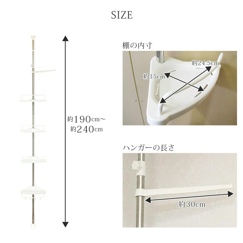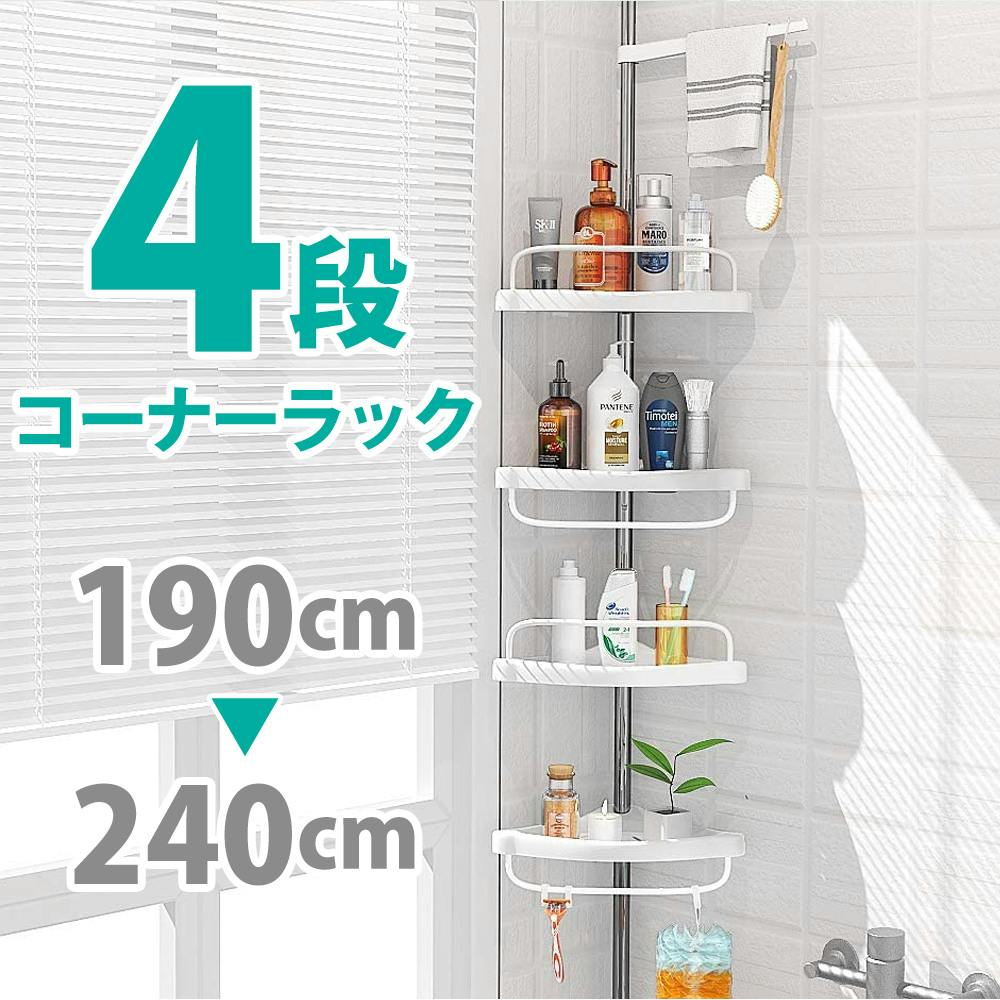 突っ張り棒で設置するだけ!突っ張りコーナーラック /高さ調節可能 4段ラック■場所をとらずにスッキリ整理/防カビ加工/オールステンレス製
