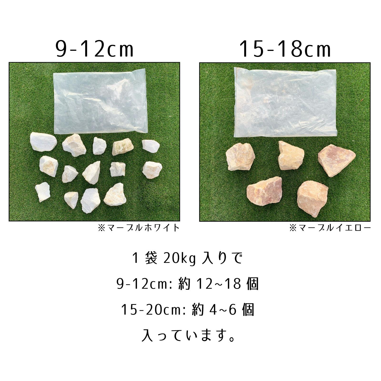 • TAIKOH マーブルイエローゴロタ 100-200mm 20kg 天然大理石 ロック 景石 イエロー 黄 ベージュ 割栗 大