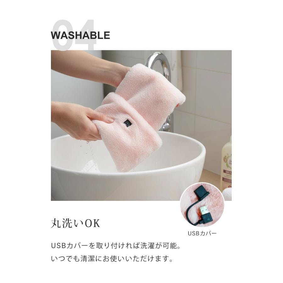 本体側のUSBプラグに、モバイルバッテリーを接続し、本体の電源を入れます。約2〜3分で暖まります。外出時はもちろん、仕事中も。毎日どこでも暖かい。※モバイルバッテリーは付属しません。別途お求めください。