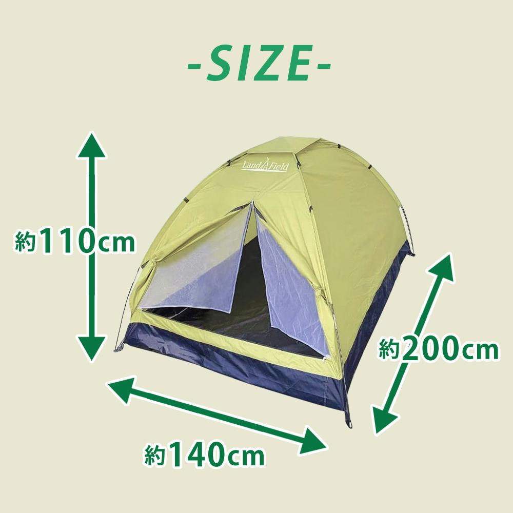 LandField ドーム型テント ファミリーテント LF-ST020-YE 1~3人用 防水 UVカット 200cm トップシート付属 軽量 フルクローズ アウトドア キャンプ ソロキャンプ ビーチテント ポップアップテント コンパクト 持ち運び 日よけ 【公式】