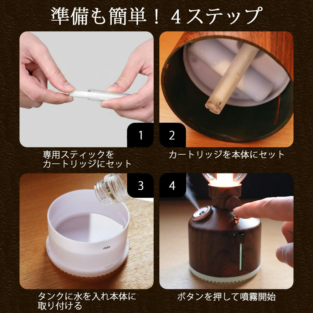 ■室内で間接照明インテリアはもちろん、アロマディフューザー・加湿器にも!■キャンプ・ランタン風な形状、アウトドア使用にもマッチします!■ステイホーム向け商品&SNS映え必至の決定版アイテム!■見た目により上質さを!レトロ&アンティークなダーク木目調■LEDライトなのに、本物のランタン風に強弱調光できる!■ミスト機能は6〜8時間継続と、ロングに使用可能!■USB充電式で、超コンパクト!場所選ばず使用ができます