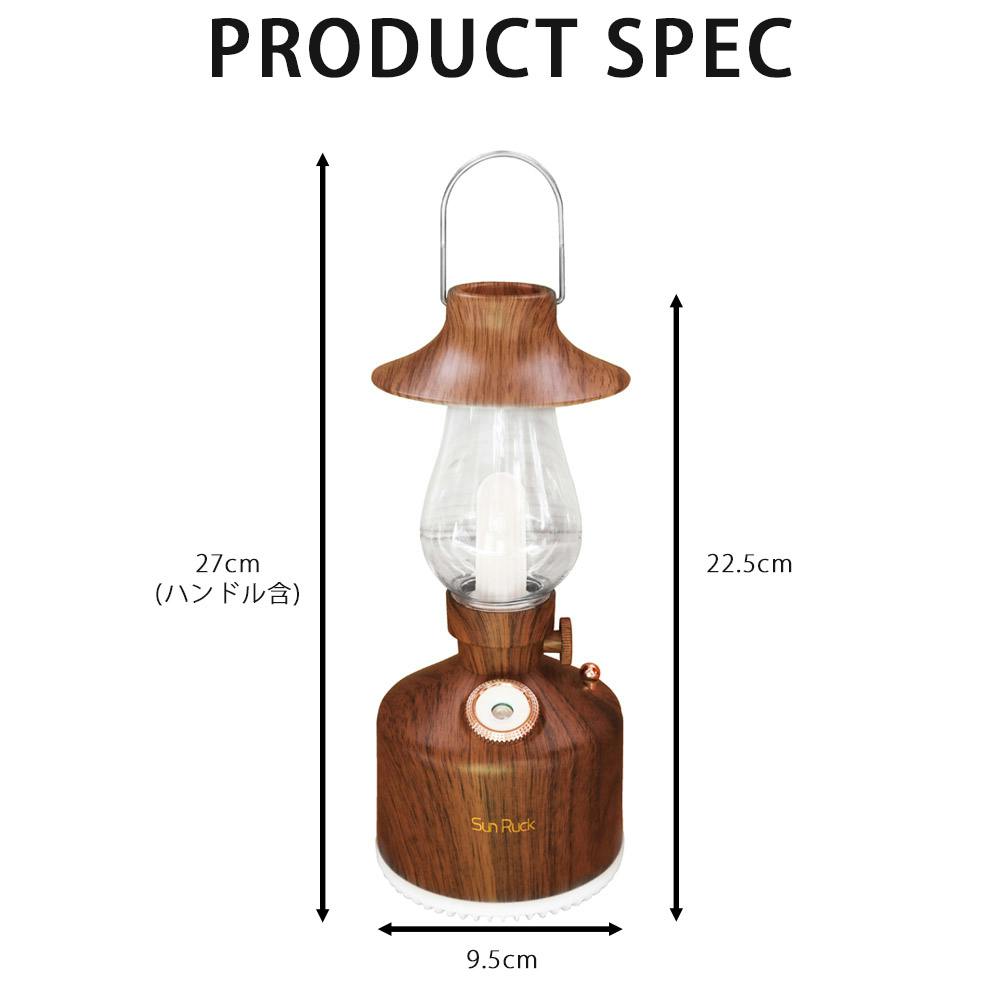 SunRuck LEDランタン型 アロマディフューザー ランタン・ミスト SR-LAH010-DW LED 加湿器 充電式 木目調 連続点灯50時間 照明 調光 アンティーク コードレス 小型 コンパクト アウトドア キャンプ おしゃれ 【公式】