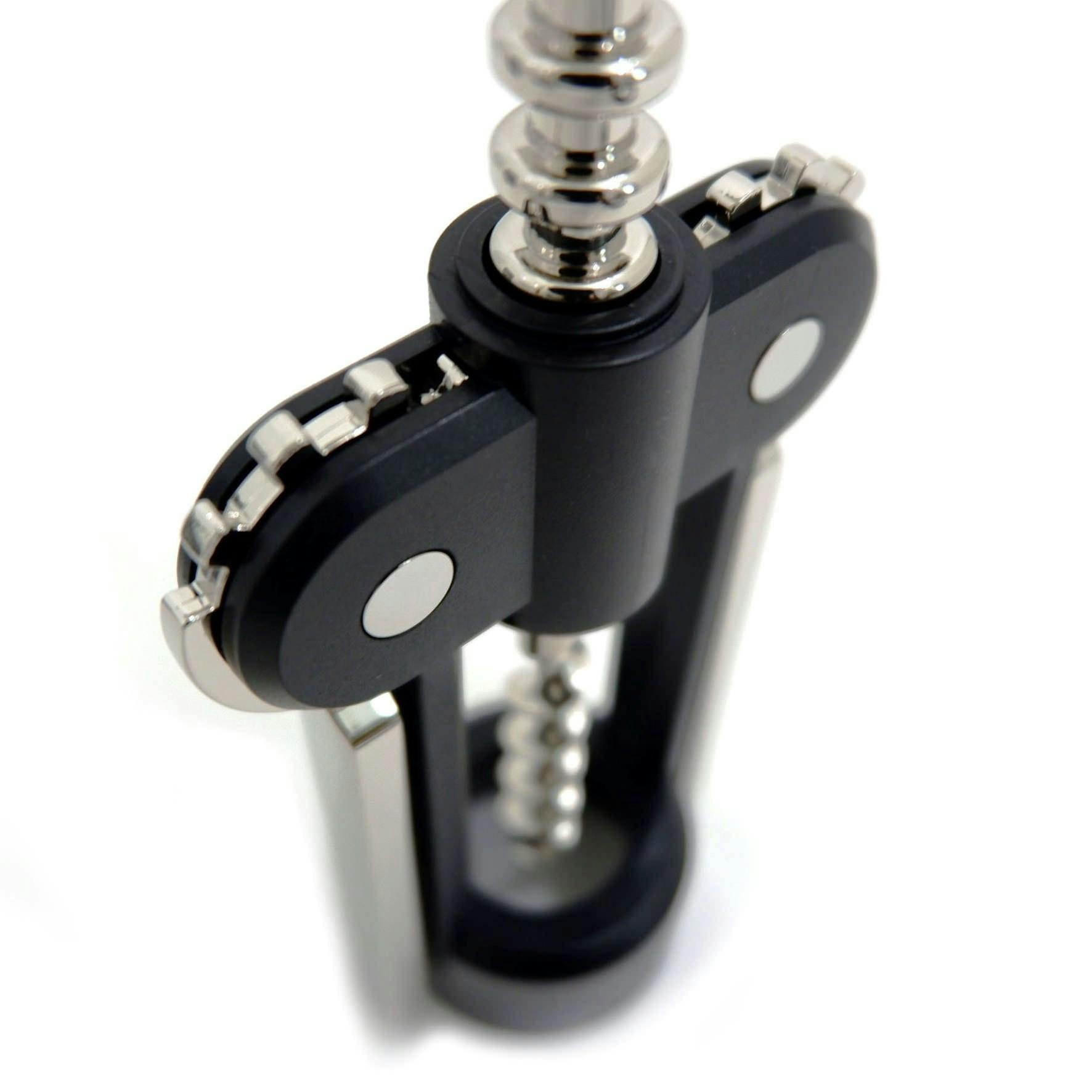 トラディショナルな飽きのこないウィング型のコークスクリューです。支えとなる本体は、シックなブラックのABSを使用しているため、日常的にお使いいただくには軽量で使いやすいアイテムです。ハンドルとウィング部分はニッケルでメッキされているので、軽量でありつつ、メタルテイストの高級感があります。スピンドルには、コルクに簡単にねじ込むためのテフロンコーティングが施されており、わずかな力で簡単にコルクを抜くことができます。
