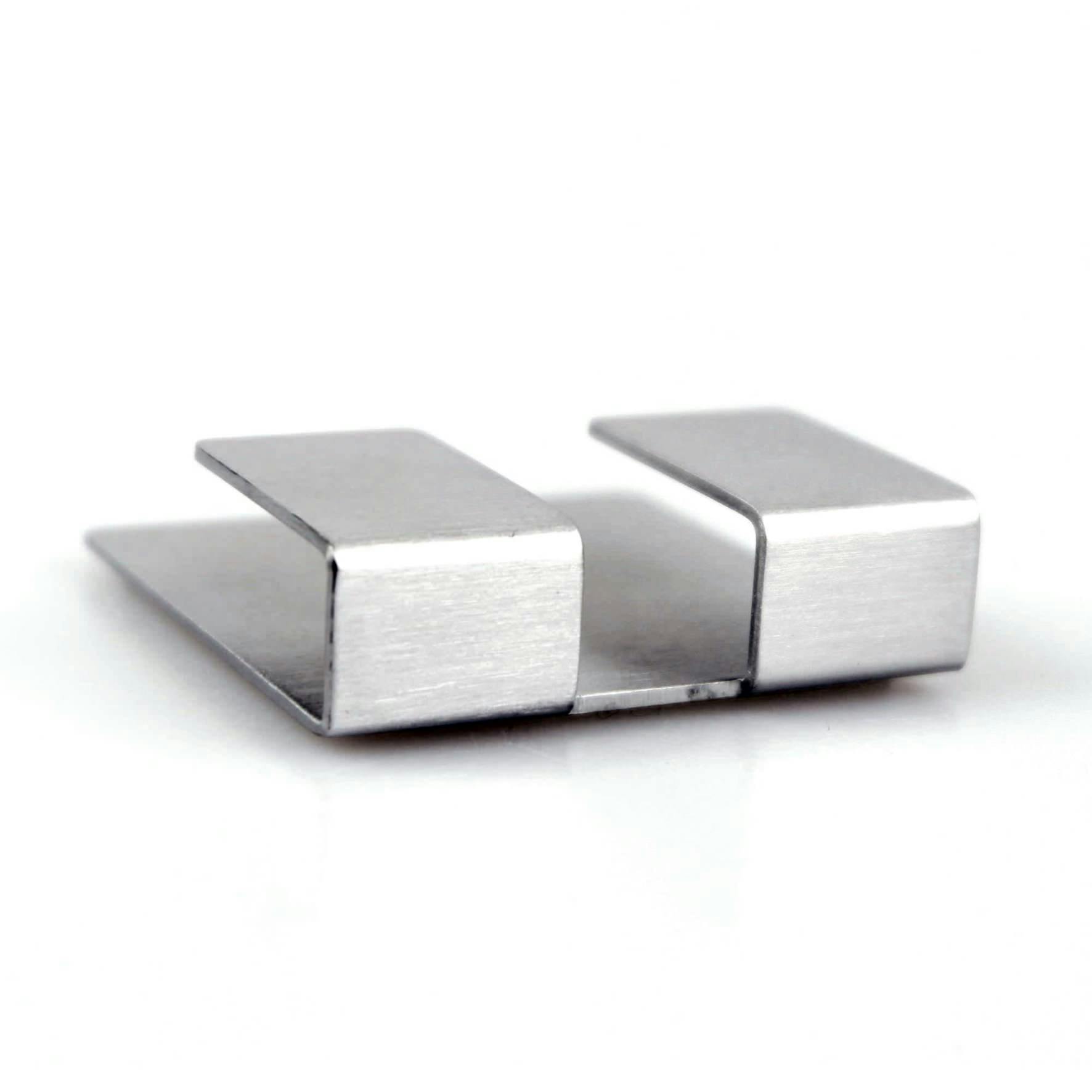 マットなヘアライン仕上げのダブルフックで、簡単に壁面に接着できます。キッチン回りのループタオルや、シンク回りのバスタオルに限らず、帽子やハンガーフックなどにもお使いいただけ、手軽なのに用途が広いのも特徴のひとつです。裏面には接着シールがついており、ガラス面や穿穴できないタイル面などへ取り付けたいシーンで重宝します。