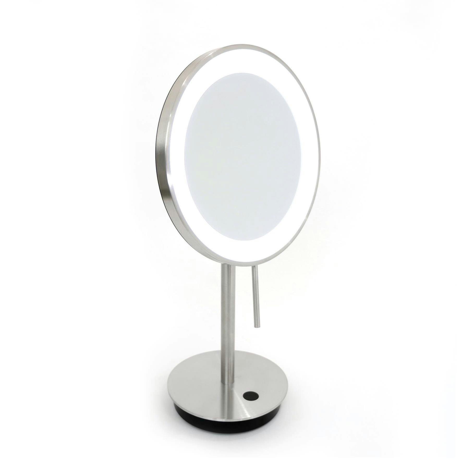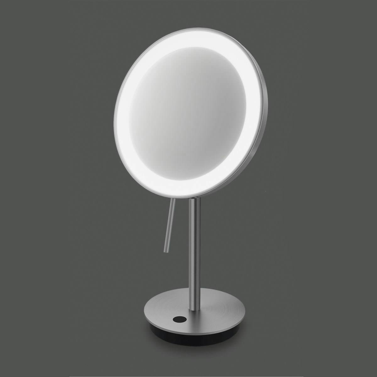 LED メイクアップミラー(X5倍) ヘアライン仕上げ|ZACK 40140 ALONA LED付き 5倍ズーム ミラー スタンドミラー 卓上鏡 片面鏡 鏡 メイク ステンレス おしゃれ 雑貨 かっこいい 上質 高級 ホテルライク 男前インテリア インダストリアル ドイツ デザイナーズ