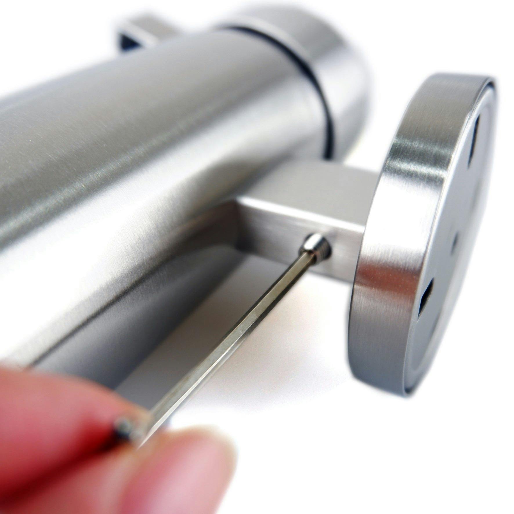 マットなヘアライン仕上げのコロンとしたフォルムはTORESシリーズのものになります。こちらの壁付けタイプは盗難などの恐れがあるパブリックなスペースや、据え置くスペースがない場所に取り付けたい時などにとても重宝します。※液体せっけん(例:ミヨシ液体せっけん等)は使用することができません。液体せっけんについては商品の特性上、詰まりやすいなどの問題が多く、各メーカーで専用ボトルなどが発売されているようです。詳しくはお使いの液体せっけんメーカーにお問い合わせください。
