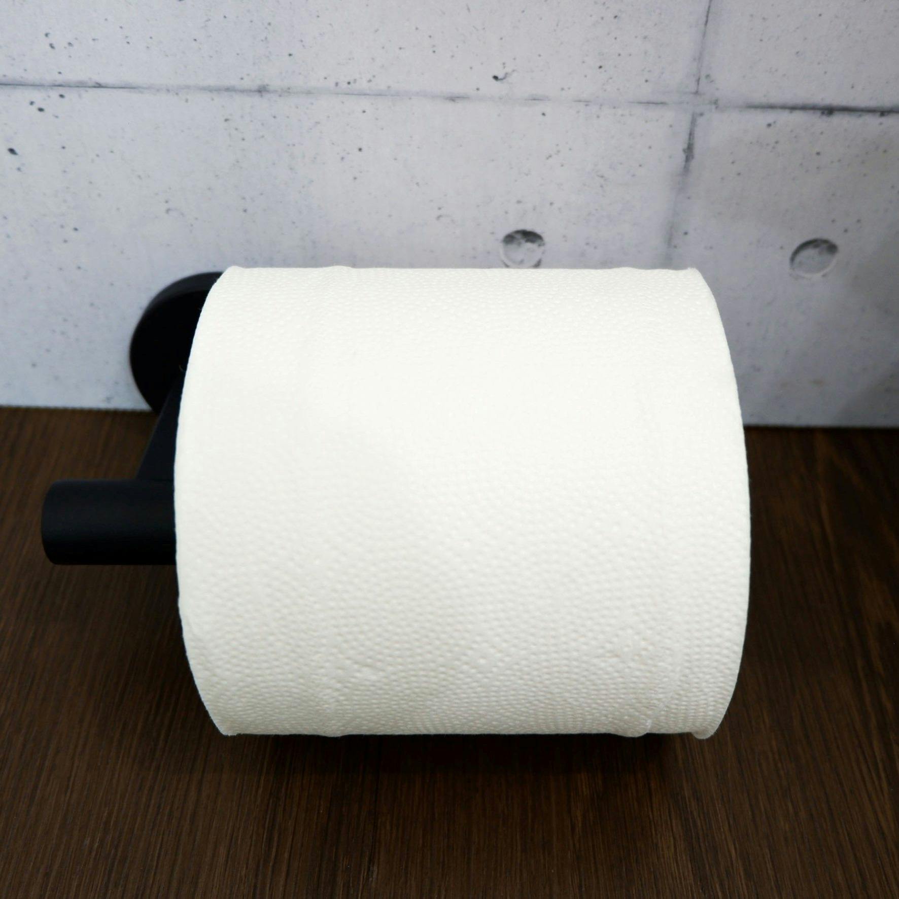 シックモダンなマットブラック仕上げのトイレットペーパーホルダーです。壁設置タイプなので、盗難などの恐れがあるパブリックなスペースや、据え置くスペースがない場所に取り付けたい時などにとても重宝します。※「芯なし」のトイレットペーパーは使用できません。