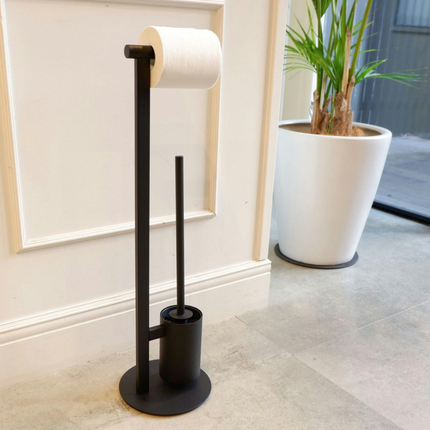• トイレットバトラー マットブラック|ZACK 40856 SCALA ペーパーホルダーとブラシの一体型 トイレ収納 スタンドタイプ ステンレス 高級 ホテルライク ドイツ デザイナーズ