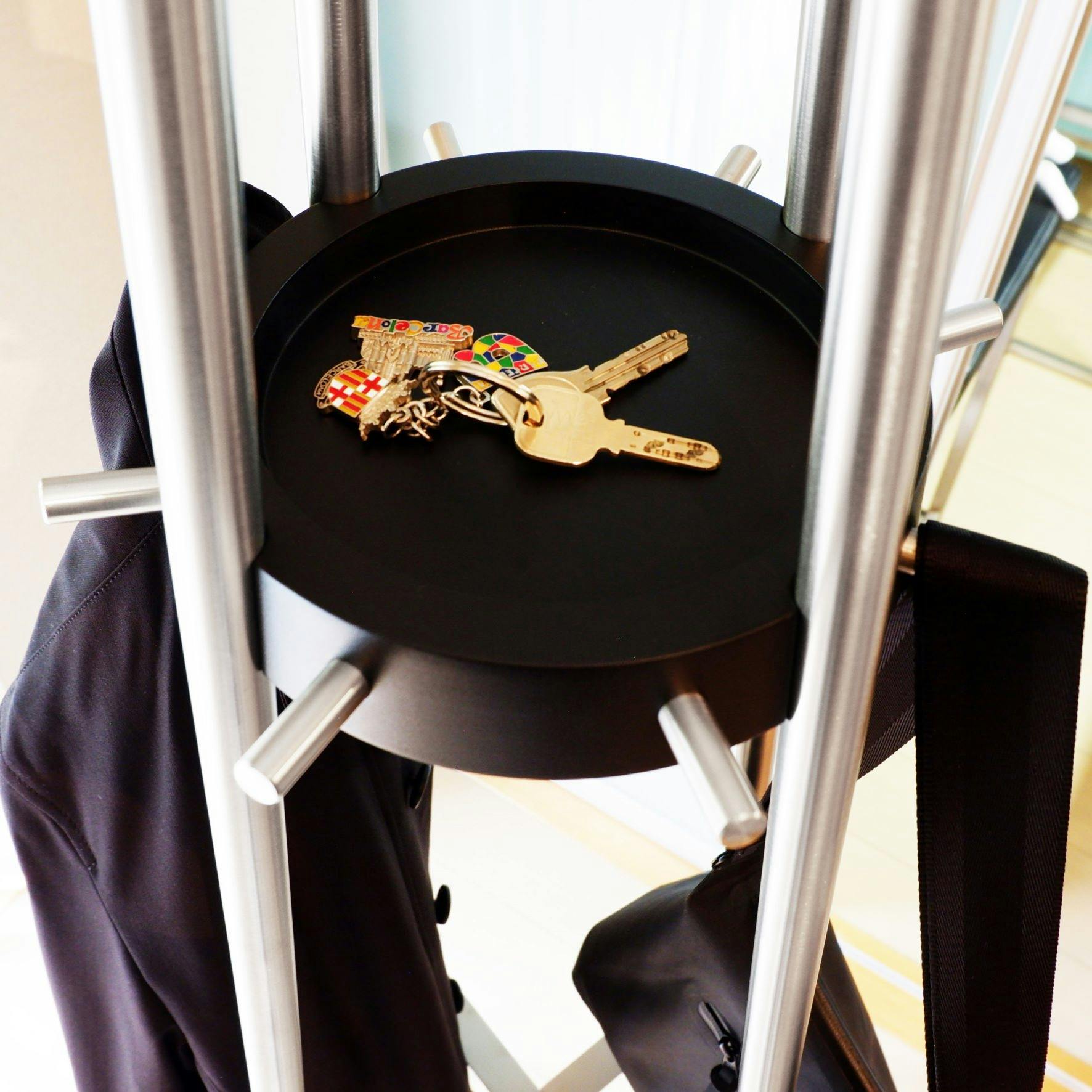 堅牢なバレットタイプのものと比べると、シンプルモダンで繊細な印象のコートスタンドです。他にも、アンブレラスタンドと一体型、アクセサリトレイ付き、壁に設置するタイプなど、たくさんのラインナップがあり、全てのアイテムが文句なく恰好良い仕上がりになっています。