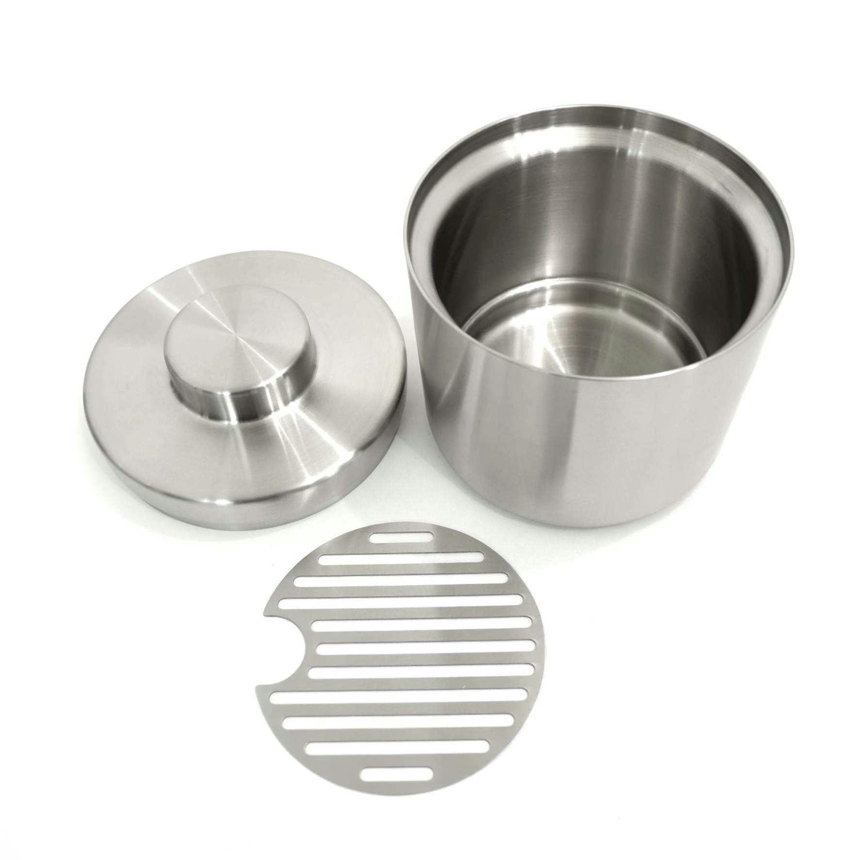 アイスバケツです。内側の水はけ用のメッシュは上から置くだけ。簡単にさっと洗うことができます。アイストングは付属していませんので、同じシリーズの20318 アイストングと是非セットでご使用ください。