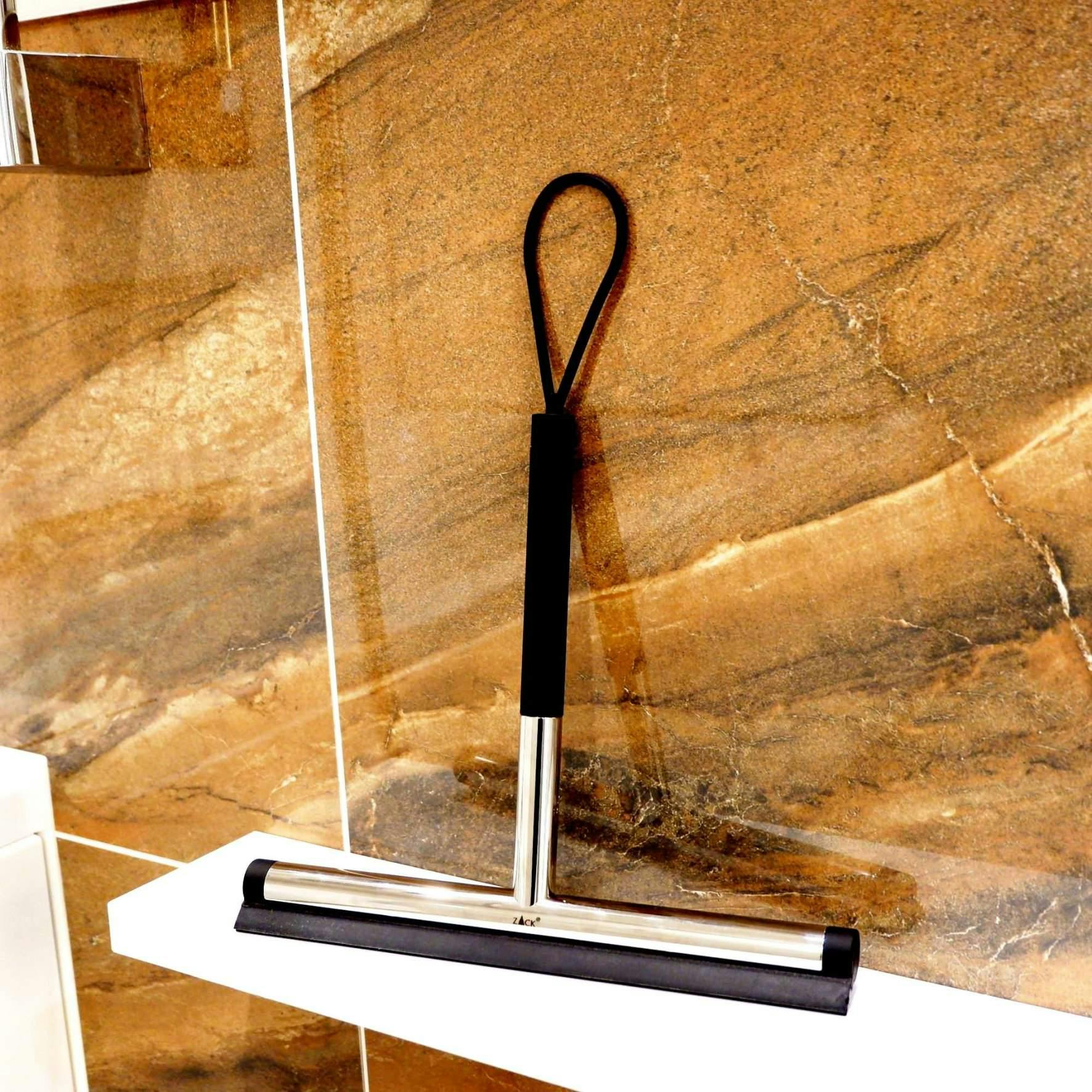 水滴は車のワイパーのように軽く撫でるだけで綺麗に落とせます。強くゴシゴシと磨く必要はありません。むしろあまり力を入れてしまいますと、不要にゴムの劣化を早めてしまいます。水滴を拭う時はあまり力を入れないようお使いいただくのが、長持ちさせるコツです。鏡やタイルなどのツルツルの壁、天井まで幅広くご使用いただけます。ザラザラした面に使うとパッドが劣化してしまいますので、お控えください。