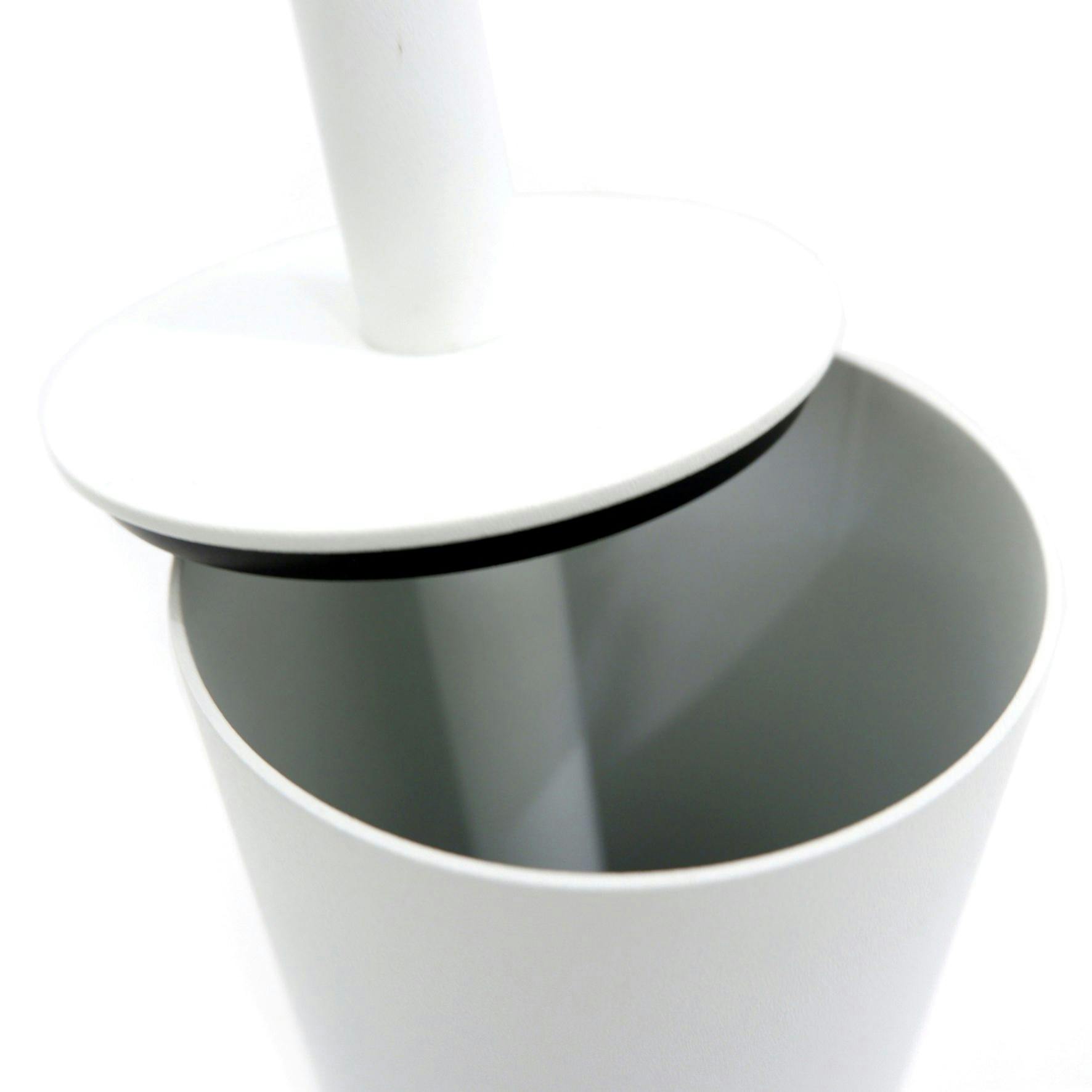 スタンドタイプのトイレブラシセットです。フェミニンなホワイト仕上げなので、他のホワイト仕上げのアイテムとセットでお使いいただくのもおすすめです。