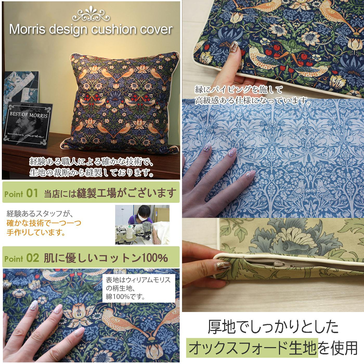 インテリアショップゆうあい おしゃれ パイピング付 クッションカバー と クッション セット モリス柄 約45×45cm セット1 いちご泥棒 ブルー morris-cushion (Y) Fabric by BEST OF MORRIS