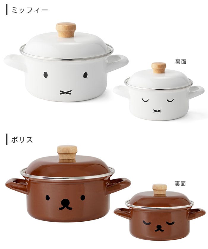 ミッフィー ボリス フェイス キャセロール 15cm ポリ蓋付き IH対応 富士ホーロー【miffy boris シンプルフェイス グッズ 両手鍋 離乳食 調理器具 オーブン調理 ホーロー ほうろう ディックブルーナ】 ボリス