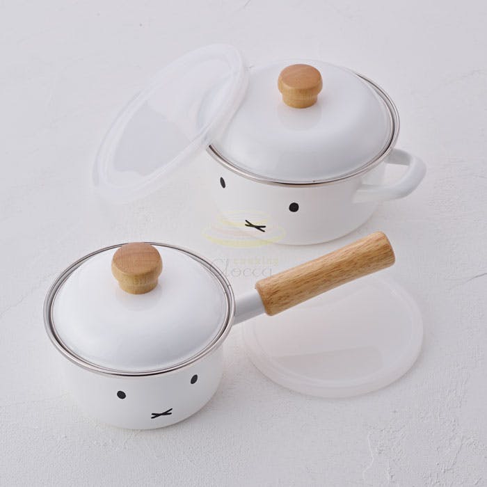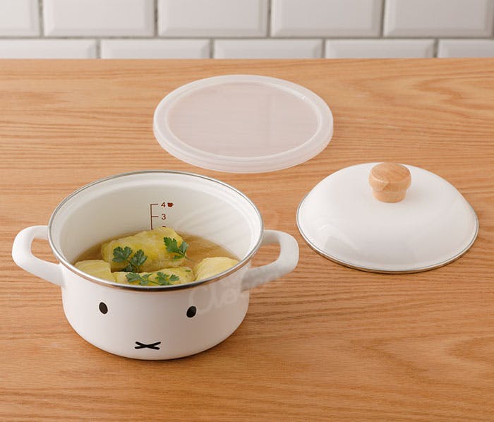 ミッフィーのかわいいおかおがデザインされたミニキャセロール。表と裏で違う表情が楽しめます。 必要な分だけ少量で調理できるので、一人暮らしや1~2人分の味噌汁やスープつくりにぴったりです。 表面がツルツルのガラス質なので雑菌が繁殖しにくく、また金属類の溶出もないので衛生的です。 赤ちゃんの離乳食やお年寄りの食事作りにも安心してお使いいただけます。