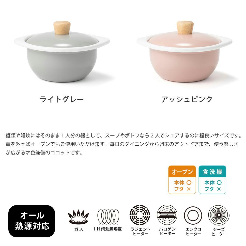 富士ホーロー コットン ホーロー ココット 15cm ガス火 IH対応 CTN-15C Cotton Series コットンシリーズ【ココット鍋 両手鍋 ホーロー鍋 ラーメン鍋 オーブン型 一人鍋 琺瑯 食器】 アッシュピンク