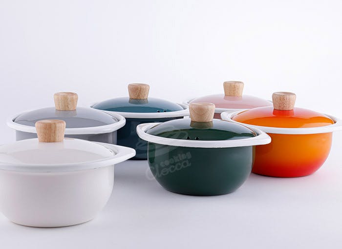 富士ホーロー コットンシリーズ。日々の生活から発想した、扱い易いシンプルなフォルム。 琺瑯の質感と天然木の風合いを活かしたスタイリッシュなカラーバリエーション。 麺類や雑炊にはそのまま一人用の鍋兼食器として、スープやポトフなら2人でシェアするのに程よいサイズです。 蓋を外せばオーブン調理も可能。プディングやグラタンなど、オーブン型としてもお使いいただけます。 調理してそのまま食器にもなる、使う楽しさが広がる才色兼備のココットです。