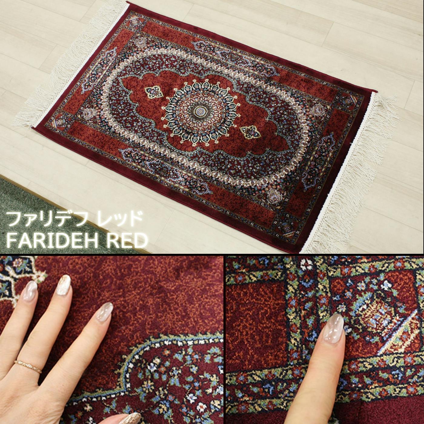 インテリアショップゆうあい 輸入 玄関マット シルクタッチ modal-5080 (Y) 約50×80cm ファリデフ レッド FARIDEH M2009B/RYB35 光沢感 房付き マット 144万ノット 高密度